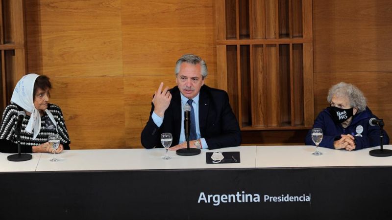Durante su discurso, el jefe de Estado también reivindicó a las Madres y Abuelas de Plaza de Mayo, a quienes definió como las únicas capaces de enfrentar "lo peor que ocurrió en la Argentina", en referencia a la última dictadura militar.