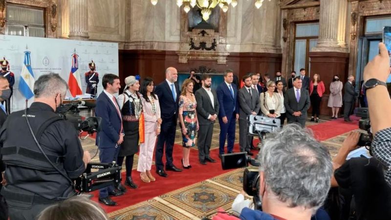 Boric, Massa y Abdala Ledesma se trasladaron al Salón de Honor de la Cámara de Diputados donde se realizó la reunión, de la que participaron también los presidentes del Senado chileno, Álvaro Antonio Elizalde Soto, y de la Cámara de Diputadas y Diputados trasandino, Raúl Humberto Soto Mardones.