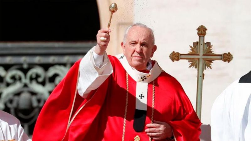 Francisco, aquejado de un problema en la rodilla que le dificulta el caminar, bendijo las palmas desde un altar en la puerta de la basílica y no desde el obelisco en el centro de la plaza, como en años anteriores, y tampoco siguió en la procesión con fieles y el clero.