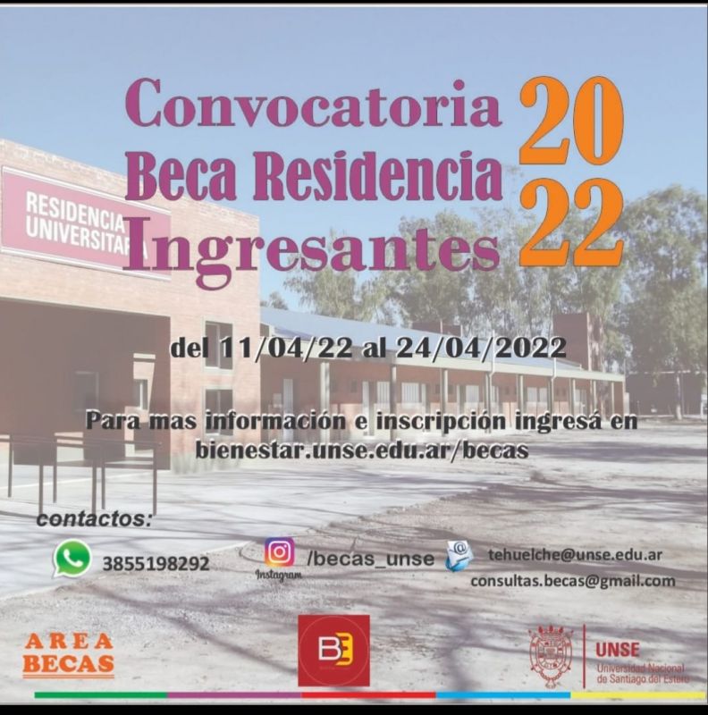 Tiempo de lectura: 1 minuto, 56 segundosLa Secretaría de Bienestar Estudiantil de la UNSE informa a los Ingresantes 2022 que está abierta la convocatoria para postularse a las Becas Residencia.