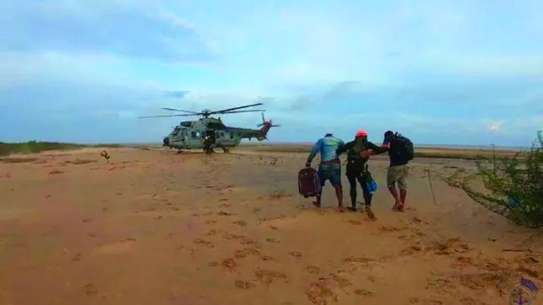 Junto a órganos estatales la Marina brasilera emprendió el rescate este miércoles y con un helicóptero pudieron localizar a los tripulantes. Los militares fueron los que realizaron las primeras curaciones y aunque estaban en buen estado de salud fueron derivados a un centro de primeros auxilios.