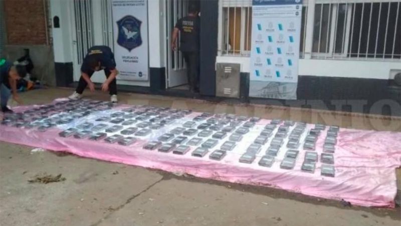 Al llamar al 911, efectivos de comisaría local y de la Superintendencia de Investigaciones del Tráfico de Drogas Ilícitas de la Policía de la provincia de Buenos Aires confirmaron que era cocaína por un total de 80 kilos.