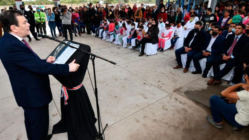 En el momento de su discurso, el gobernador expresó su satisfacción por el avance del programa de Viviendas Sociales y el plan de infraestructura educativa en todos los rincones de la provincia.