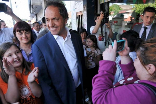 "El camino no es la devaluación que propone el candidato de la alianza, eso genera en todo el aparato productivo, en el consumo interno un retroceso. Confiamos en que la mayoría se va a definir por el camino que va hacia el desarrollo", resaltó Scioli, acompañado por el intendente de Berazategui, Patricio Mussi.