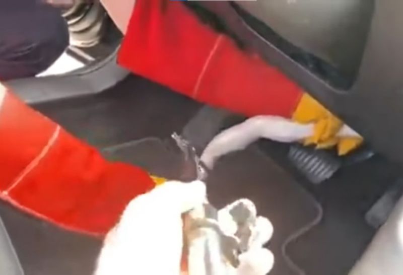 Los profesionales inspeccionaron la zona del motor en profundidad cuando finalmente dieron con el causante: una serpiente pitón albina.