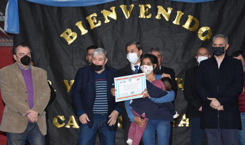 Los funcionarios provinciales fueron recibidos en el pórtico de entrada para el primer corte de cintas. Luego la comitiva se dirigió a la casa de Cintia Cecilia Ponce, donde se realizó la entrega simbólica de viviendas a los 95 beneficiarios. Posteriormente fue habilitada la nueva sala velatoria municipal.