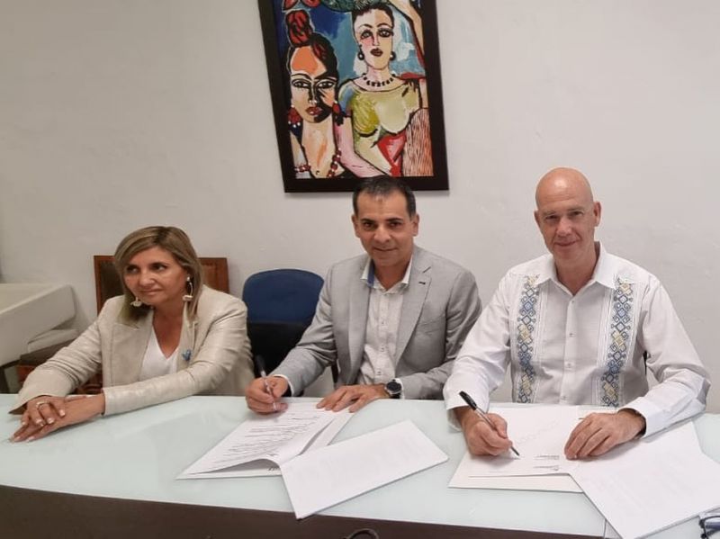 Norma Isabel Fuentes, el secretario de la Representación Oficial y de Relaciones Internacionales de la provincia, Bernardo Abruzzese y, Raúl Ola, gerente general de CIID, en representación del gobierno provincial.