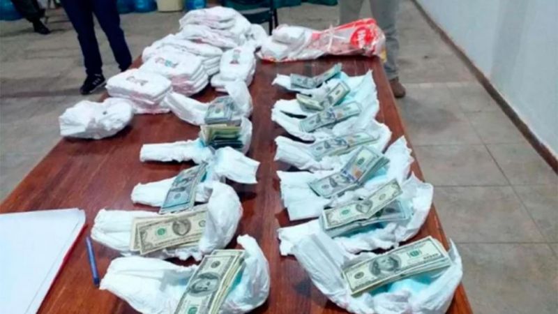 Al momento de la inspección, los gendarmes hallaron dólares dentro de la campera del involucrado, lo que motivó en una requisa más exhaustiva que derivó en el hallazgo de más billetes de la moneda extranjera dentro de las zapatillas. Descubrieron 287.630 dólares.