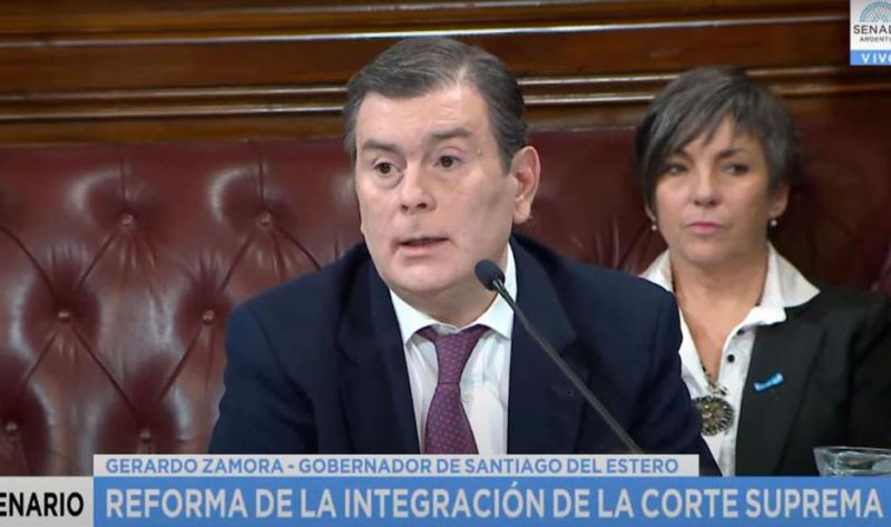 Un grupo de gobernadores participa del debate sobre la reforma y ampliación del número de integrantes de la Corte Suprema de Justicia de la Nación, en un plenario de comisiones del Senado convocado por el oficialismo y rechazado por la oposición.