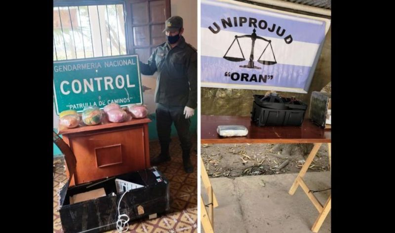 Consecuentemente, los funcionarios constataron que en el interior de los bultos había un artefacto de cocina y un dispenser de agua que contenían dos “panes” rectangulares, con 2 kilos 108 gramos de clorhidrato de cocaína, como así también paquetes con 7 kilos 940 gramos de “cannabis sativa” y 36 gramos de pasta base de cocaína.