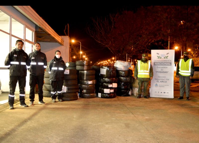 Los funcionarios, en conjunto con personal AFIP- DGA, Delegación Posadas, realizaron una inspección minuciosa sobre la carga y observaron a simple vista cubiertas de origen extranjero de distintos tamaños, como así también 13 cajas cerradas, que sometidas a un control mediante el equipo de rayos “X”, se constató la presencia de más neumáticos sin documentación que avale su procedencia ni registro de su legal ingreso al país, por lo que se procedió al decomiso.
