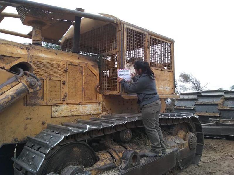 Los guardabosques, con el apoyo de efectivos policiales, procedieron al secuestro de una topadora Caterpillar D8 con rolo de 5 metros, una casilla, un tanque de agua, un tanque de combustible y un compresor.
