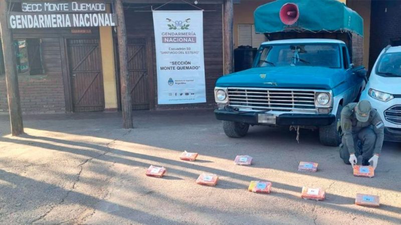 Al obtener el resultado de las pruebas de campo narcotest efectuadas por personal de Criminalística y Estudios Forenses, los gendarmes decomisaron 9 kilos 836 gramos de cocaína.