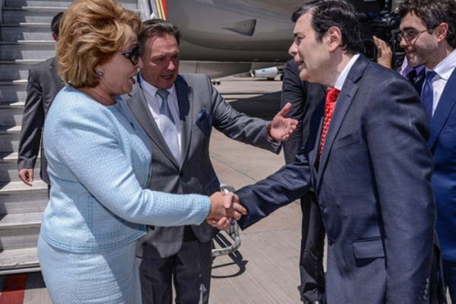 La funcionaria encabeza una comitiva integrada por senadores y autoridades legislativas, entre quienes se encuentran también el vicepresidente del Consejo de la Federación, Ilyas Umakhanov, y los jefes de los Comités de Ciencia, Cultura y Educación; de Legislación Constitucional y Formación Estatal, de Asuntos Internacionales; y de Contabilidad y Mercado Financiero; así como autoridades del Parlamento y la Cancillería Rusa.