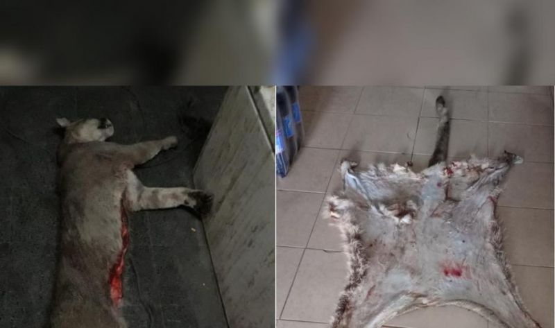 Allí, se procedió con el secuestro del cuero y la carne del puma, además de decomisar elementos prohibidos para la caza y la pesca.