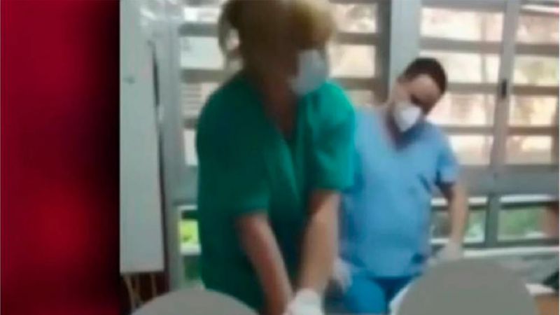 En el video se puede apreciar a un paciente que está intubado y desnudo sobre una camilla. Mientras una persona le practicaba maniobras de reanimación, varias personas a su alrededor se reían a carcajadas. “Los brazos firmes, doctora”, le corrige una de esas personas entre risas. “Arriba y abajo”, agrega la mujer, mientras continuaba con la reanimación.