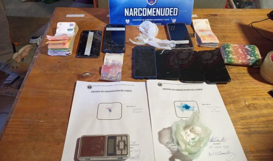 Los uniformados en el lugar lograron demorar a cuatro sujetos y dos mujeres entre 28 y 30 años de edad. También se logró secuestrar 16 gramos de cocaína, 300 dosis listas para la venta y cuatro piedras fraccionadas.