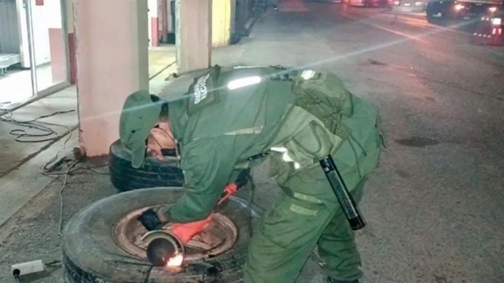 De esta forma, utilizaron herramientas de corte para abrir los neumáticos y retiraron 113 paquetes que contenían "cannabis sativa".
