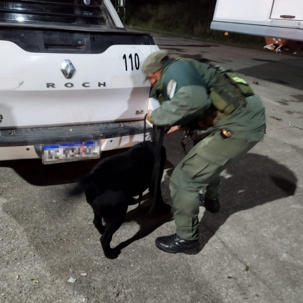 Inmediatamente, los gendarmes profundizaron la inspección con apoyo del can detector de narcóticos “Tango” que reaccionó de manera exaltada al pasar por la zona, marcando la existencia de estupefacientes.