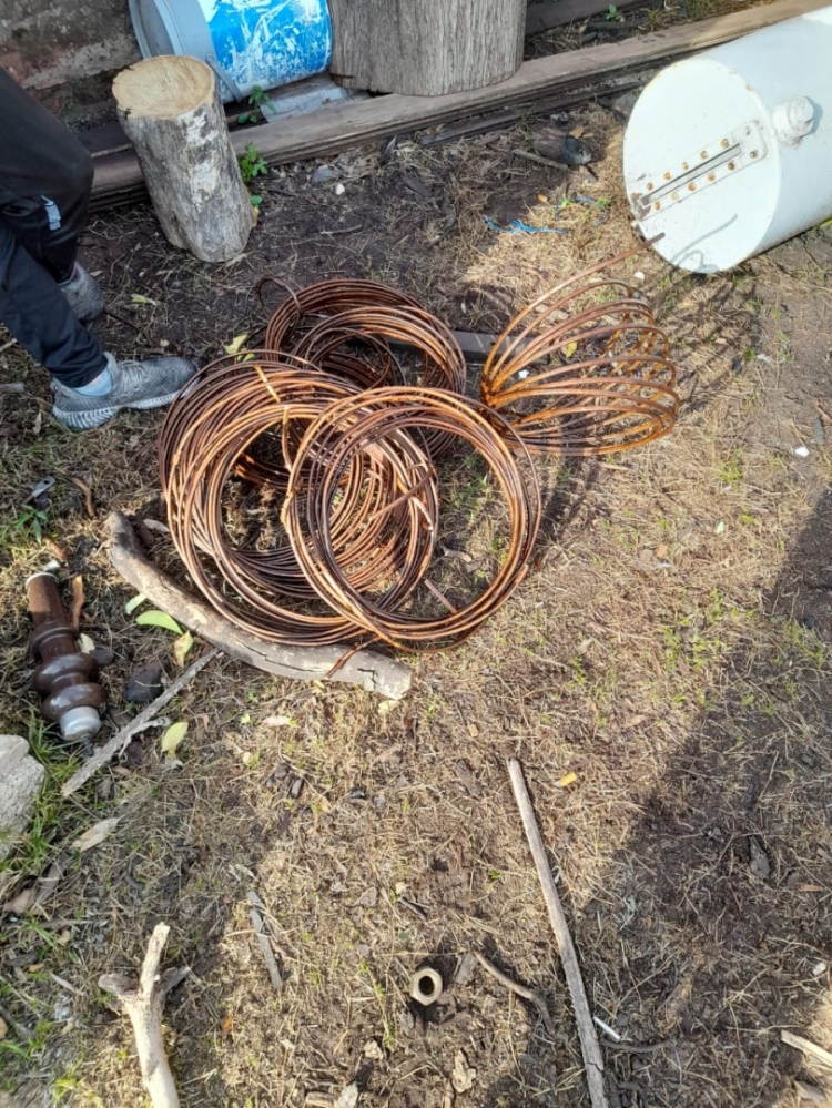 Al aproximarse al lugar, los funcionarios visualizaron al lado del ciudadano diferentes herramientas de corte y rollos de cobre. Ante esta situación, se solicitaron testigos que presenciaron el accionar del personal interviniente. El involucrado, un joven de 24 años, tenía heridas en las manos producto de la manipulación de los elementos metálicos.