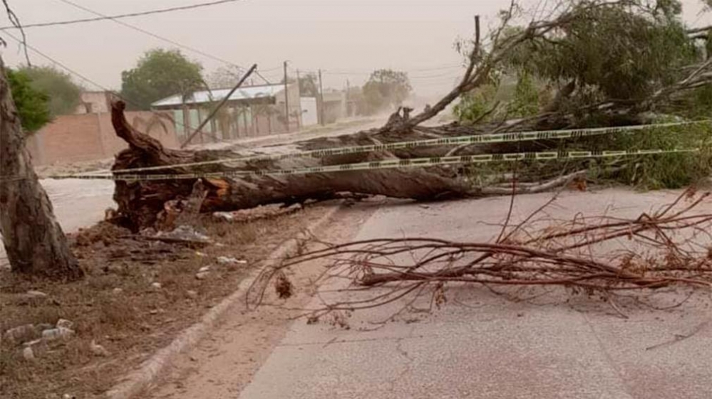 La jornada ventonsa de este domingo, provocó múltiples inconvenientes en la cabecera del departamento Moreno, con numerosos árboles caídos, además de la caída de postes, cables cortados y voladuras de techos.