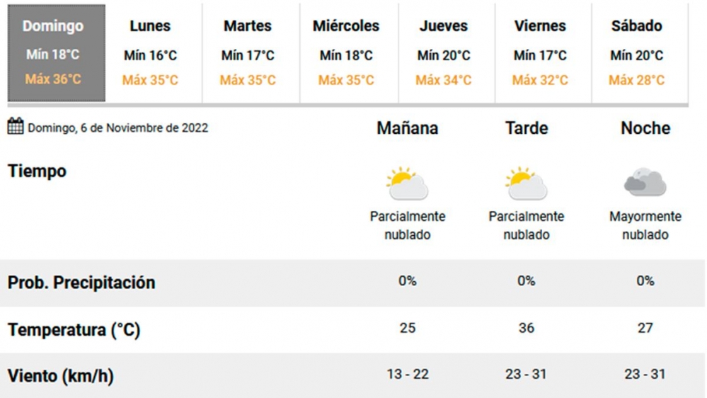 Las condiciones de calor agobiante, según el organismo nacional, se mantendrán durante toda la semana, y los registros oscilarán entre los 16 grados de mínima y 35 de máxima.