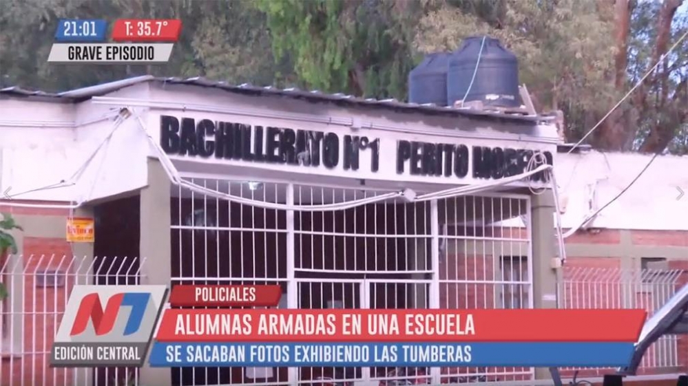 Alrededor del mediodía de este jueves, un preceptor de la escuela “Perito Moreno” vio en el estado de WhatsApp de una de sus alumnas que aparecía junto a una compañera, posando con armas de fuego de fabricación casera, en horario de clase.