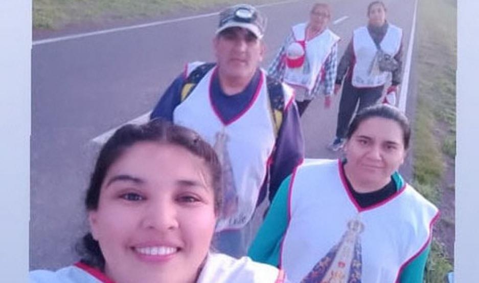 El grupo de peregrinos San Expedito en columna a unos 25 santiagueños que viajan a pie. Salieron el 29 desde la rotonda del barrio Autonomía, cargados con la ilusión de estar frente al altar de la Virgen del Valle en su fiesta patronal.