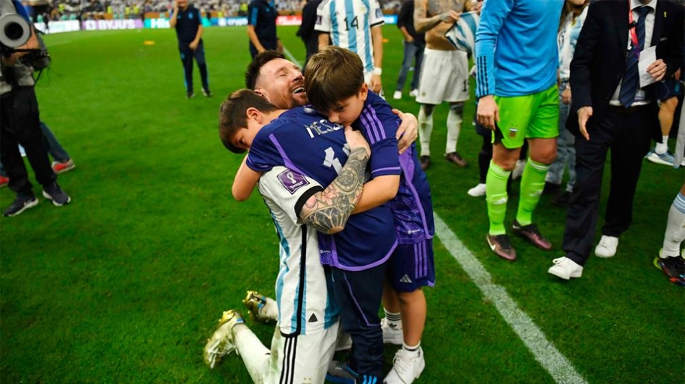Como no podía ser de otra manera, el astro y emblema de la Selección Argentina celebró tanto con los jugadores y también con su familia, que bajó desde el palco para festejar en el campo de juego. Leo se abrazó a sus hijos antes de levantar la Copa en el Lusail, en otro de los momentos más emotivos de una jornada inolvidable para el fútbol argentino.
