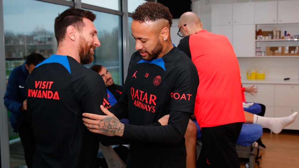 El PSG mostró en su cuenta de Twitter un breve vídeo de Messi esta mañana a su llegada al centro de entrenamiento y una foto en la que recibía el saludo de Neymar, otra de las estrellas del club.