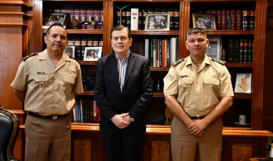 El mandatario recibió al jefe de la Agrupación XVII, comandante principal Duilio Oscar Poblete, y al jefe del Destacamento Móvil 5, comandante principal Raúl Alberto Garzón.