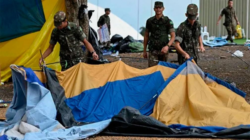 El Ejército de Brasil desalojó los “campamentos bolsonaristas” por orden del Tribunal Supremo de ese país, tras el intento de golpe de Estado con la toma de las sedes del Congreso y el Supremo, además del palacio presidencial. Las fuerzas de seguridad detuvieron a 1400 manifestantes, que estaban cerca de los cuarteles militares.