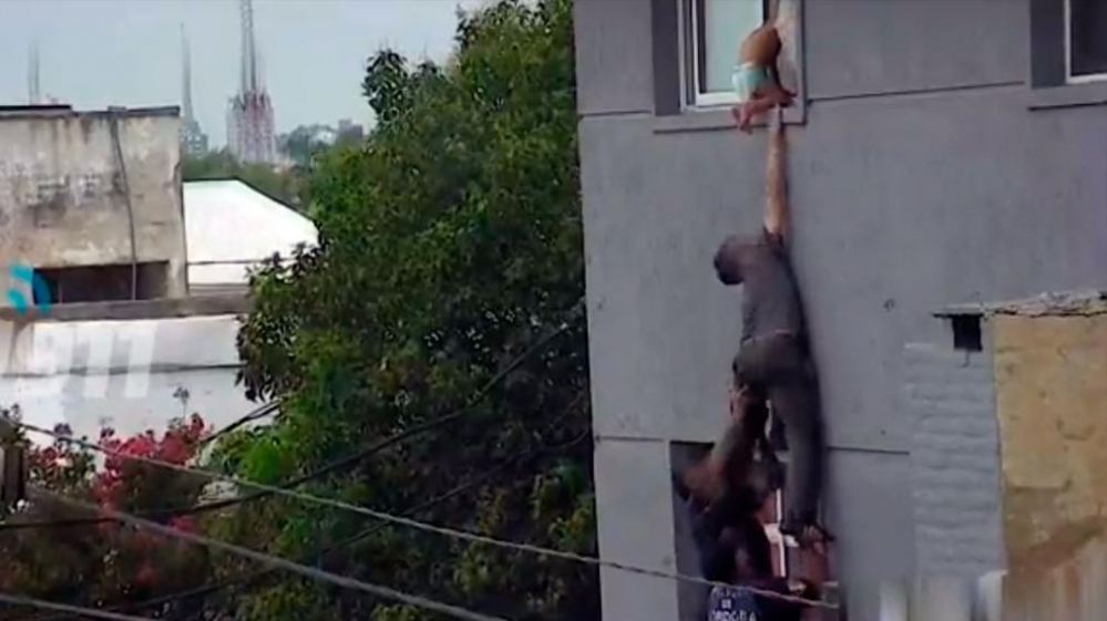 El momento de mayor tensión ocurrió cuando el pequeño se aferró a una cortina e intentó pararse, sin embargo, al no lograrlo volvió a arrodillarse. En paralelo, dos efectivos de la Policía de Córdoba se encontraban parados en el patio interno ubicado debajo de la ventana y uno mantenía sus brazos estirados para sujetar al bebé en caso de que éste perdiera el equilibrio.
