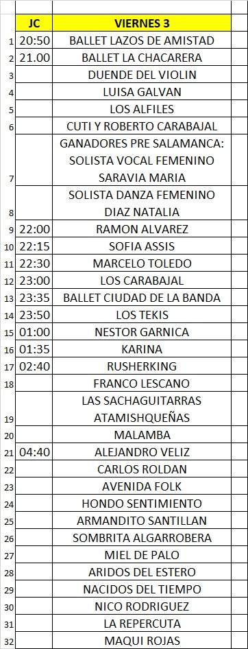 La Comisión Organizadora anticipó que la segunda noche del festival tendrá una gran convocatoria con una cartelera que promete atraer a un público de todas las edades con la presentación del trapero Rusherking, Karina "La princesita", Los Tekis, Los Carabajal, Néstor Garnica, Marcelo Toledo, Alejandro Veliz, Sacha Guitarras Atamisqueñas, Ramón Álvarez, Sofía Asís, Avenida Folk, Armandito Santillán, Sombrita Algarrobera, Nico Rodríguez, Áridos del Estero, Carlos Roldan, Luisa Galván, Los Alfiles, Miel de Palo, Paycuna, Franco Lescano y Ballet Ciudad de La Banda.