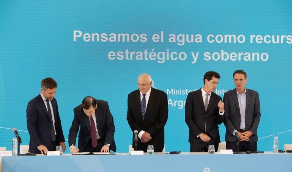 “En Argentina estamos dando pasos importantes para sacar el ruido de la discusión política y discernir problemas del futuro del trabajo y vida de argentinos y argentinas. Por eso, estos convenios nos van a ayudar a pensar cómo gestionar un recurso natural, vital y estratégico como es el agua”, dijo el ministro del Interior durante su exposición.