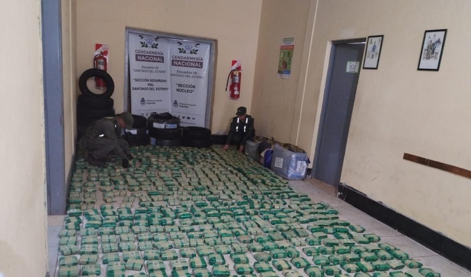 Este jueves a la mañana, el Escuadrón 59 "Santiago del Estero" de Gendermería Nacional secuestró más de 200 kilos de hojas de coca y 14 neumáticos, en cumplimiento al oficio judicial del Juzgado Federal N°1 de esta ciudad Capital.
