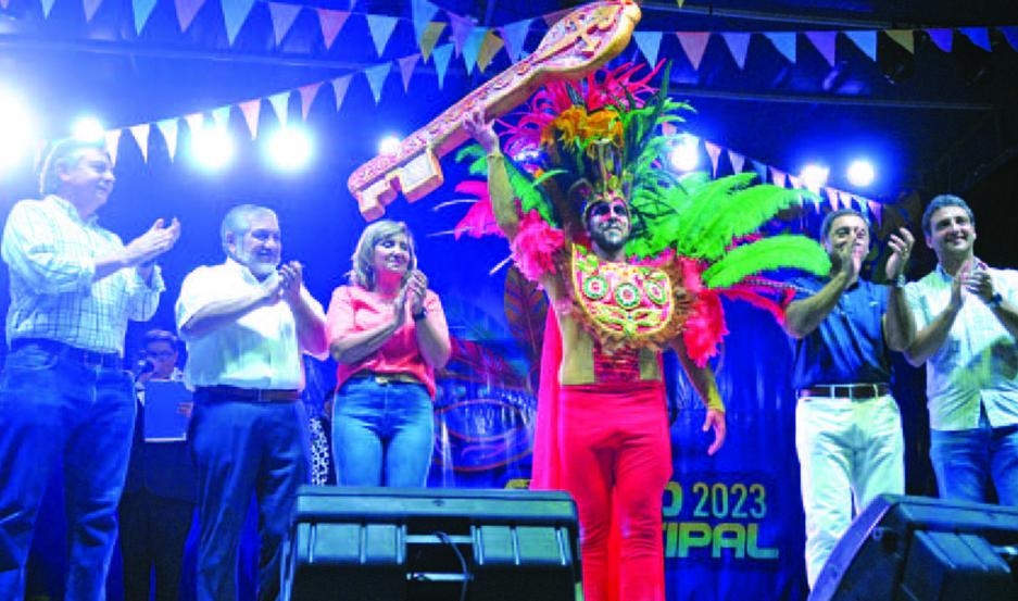 La jefa comunal fue la encargada de entregar simbólicamente las llaves al rey Momo para dar inicio a dos jornadas de color y alegría del carnaval.
