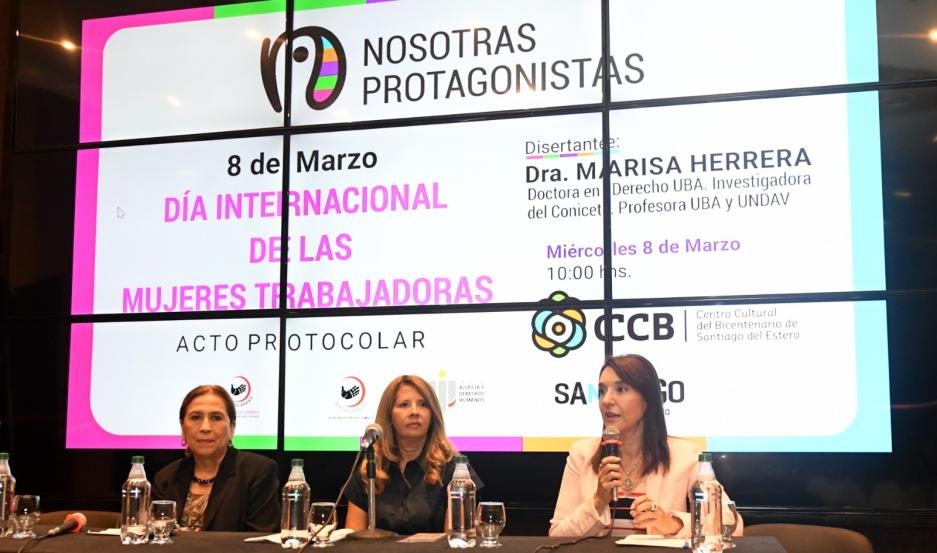 Con la presencia del gobernador Gerardo Zamora y del vicegobernador Carlos Silva Neder se realizó este miércoles por la mañana el acto protocolar por el Día Internacional de la Mujer Trabajadora, realizado en el Centro Cultural del Bicentenario con un gran marco de público.