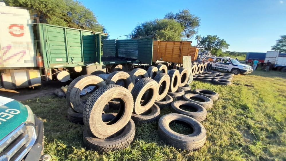 A los pocos minutos, los gendarmes lograron divisar en el fondo, varias cubiertas nuevas de diferentes marcas. Los conductores no poseían la documentación correspondiente que avale su traslado.
