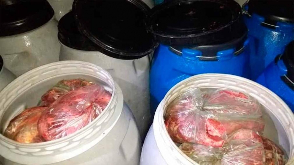 Al interceptar el camión, el personal del área Pro Carne se dio con 13 tachos plásticos cargados con carne de caballos y burros, según lo aseveró en el acta el despachante.