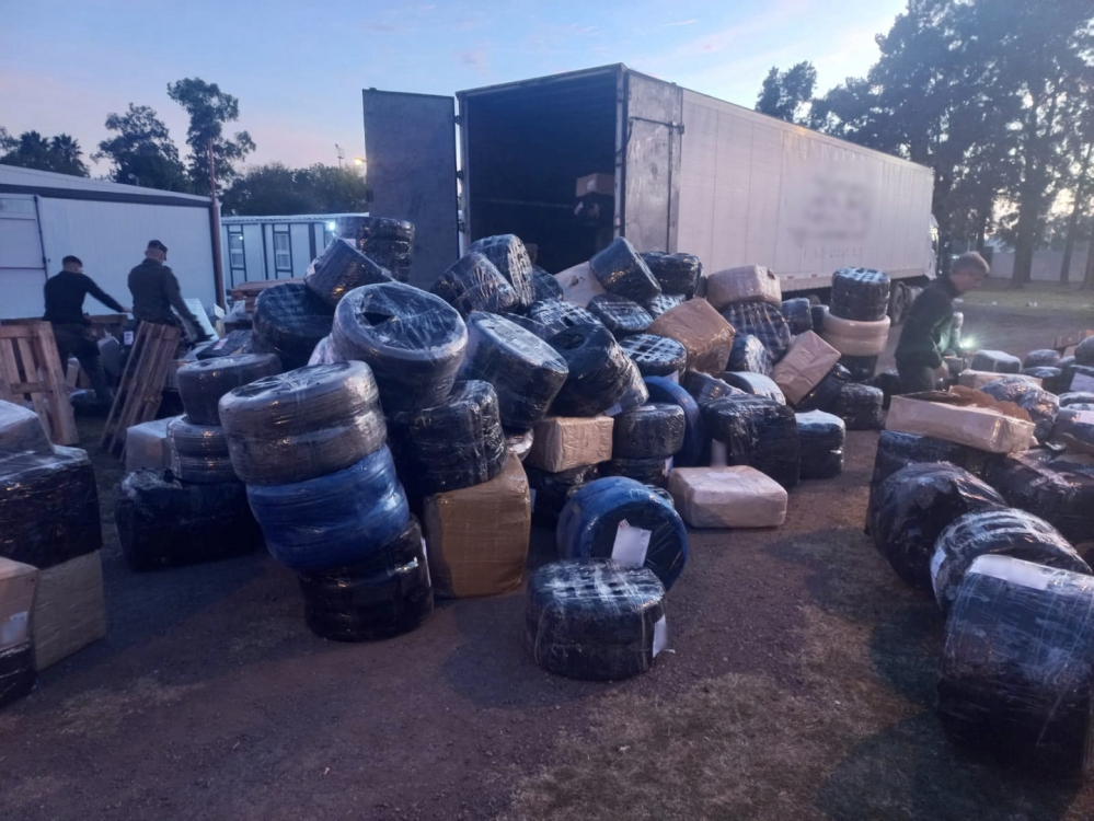 Los gendarmes secuestraron la mercadería, con intervención al Juzgado Federal de Rosario y Aduana.Asimismo, en un segundo procedimiento, los funcionarios incautaron 26.770.000 pesos argentinos, que se encontraban en el interior de dos cajas de herramientas y una mochila que eran transportadas en un rodado con un ciudadano a bordo.