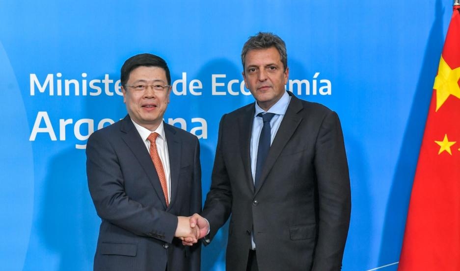 El ministro de Economía, Sergio Massa, junto al Embajador chino en la Argentina, Zou Xiaoli, anunció este miércoles la activación del swap con China, que permitirá que en mayo se paguen con yuanes más de 1.040 millones de dólares correspondientes a importaciones provenientes del país asiático.