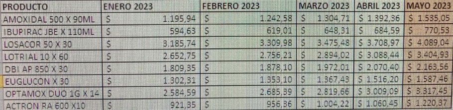 Asimismo, este mismo grupo de remedios registraron en el acumulado de este 2023, alzas promedio del 27%, pero algunos de ellos aumentaron desde enero hasta ahora por encima del 32%.