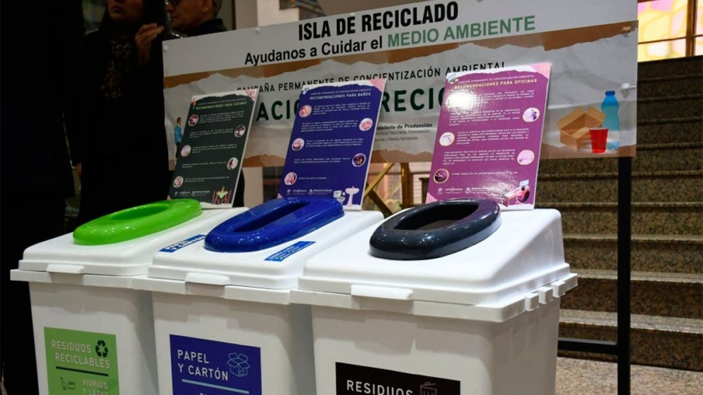 El Ministerio de Producción, Recursos Naturales, Forestación, Tierras y Medio Ambiente, a través de la Subsecretaría de Medio Ambiente, instaló una isla de reciclado en la Casa de Gobierno, como parte de la campaña permanente de concientización y la agenda que culminará con el Día Mundial del Medio Ambiente.