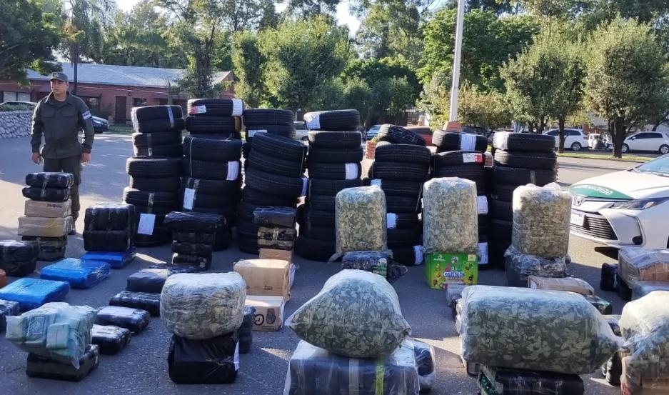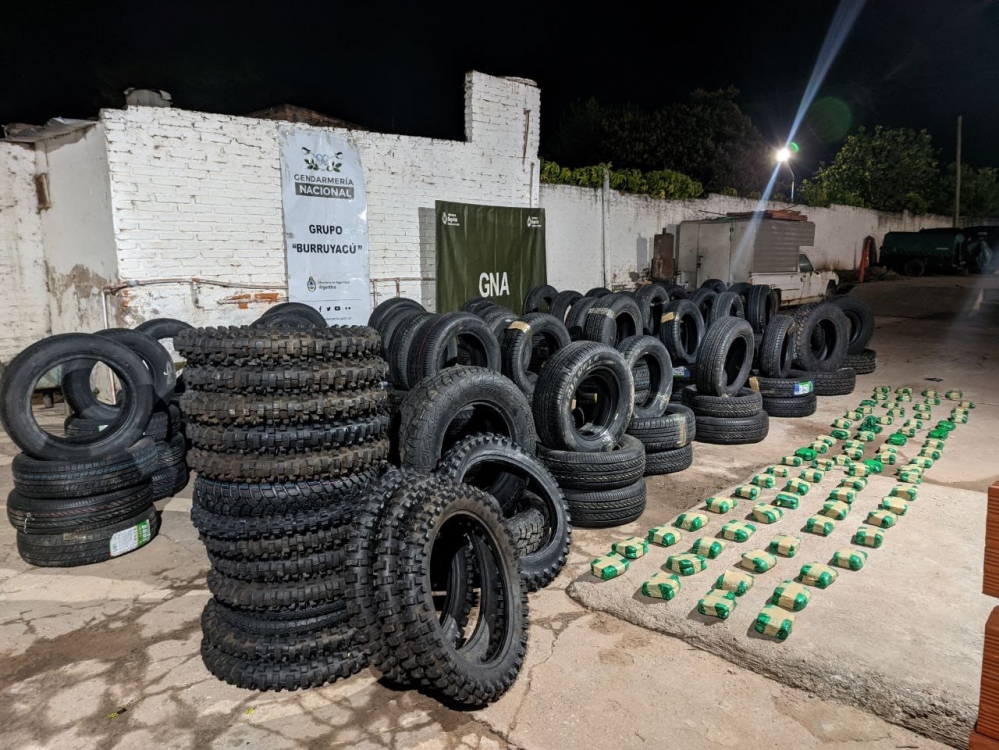 En presencia de testigos, los uniformados detectaron 754 kilos de hojas de coca en su estado natural. También hallaron 136 neumáticos de distintas medidas sin documentación que justifique su procedencia.