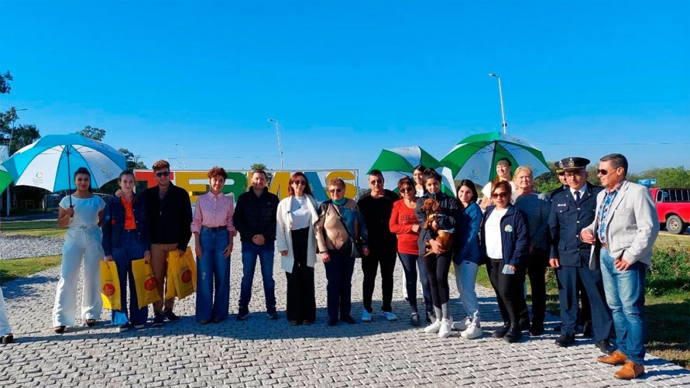 En el acceso norte de la ciudad de Termas de Río Hondo se recibió, como todos los años, al primer turista de la temporada 2023, recibimiento que estuvo a cargo de funcionarios de la municipalidad.