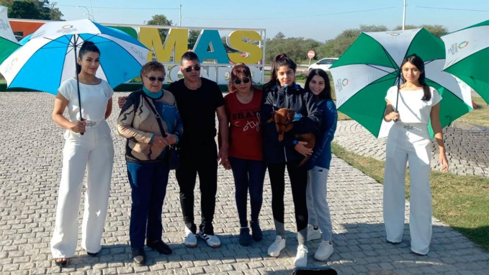 Ale Abraham llegó junto a su familia, Angela Liliana Rocha , Linda Ale, Juana Martina y Melani Diaz y fueron recibidos por Vilma Cano, secretaria de turismo, Patricia Jaimes directora de turismo, representantes de la cámara hotelera y el concejal Javier Saleme.