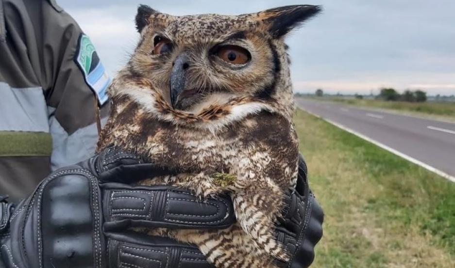 Ante esta situación, los funcionarios pusieron a resguardo el ejemplar, identificado como “Búho Americano” (su nombre científico es Bubo virginianus) y se contactaron posteriormente con personal del Parque Nacional “Laguna Palmar”, que orientó el traslado del ave hasta el asiento ubicado en la localidad de Colonia Benitez.
