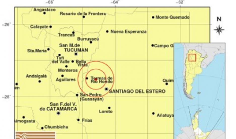 De acuerdo al organismo nacional, el movimiento sísmico fue a 44 km al NO de Santiago Del Estero; 98 km al SE de San Miguel De Tucumán; 27 km al E de Termas De Río Hondo -27.520 (lat) -64.590 (long).