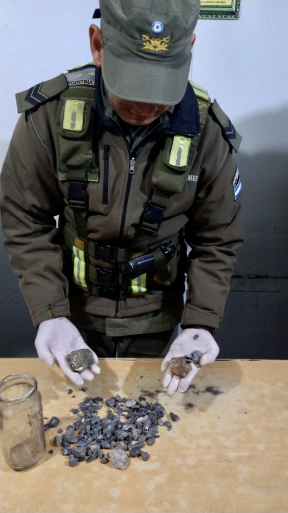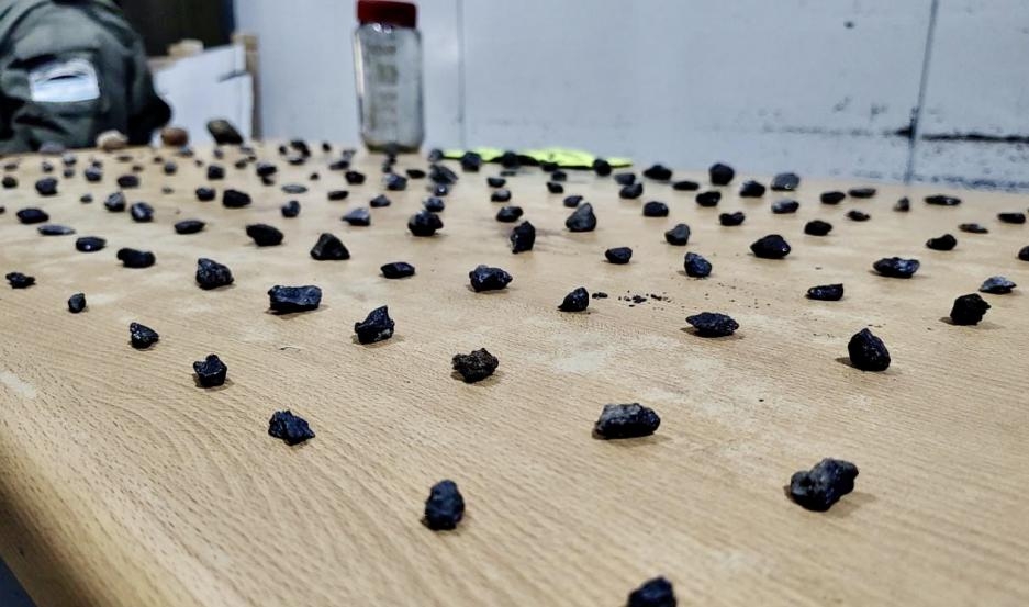 Al registrar el interior del rodado, los gendarmes detectaron un total de 184 piedras de diferentes tamaños desperdigadas del lado del acompañante, como así también dentro de un frasco que se encontraba entre el piso delantero del conductor y el asiento trasero.